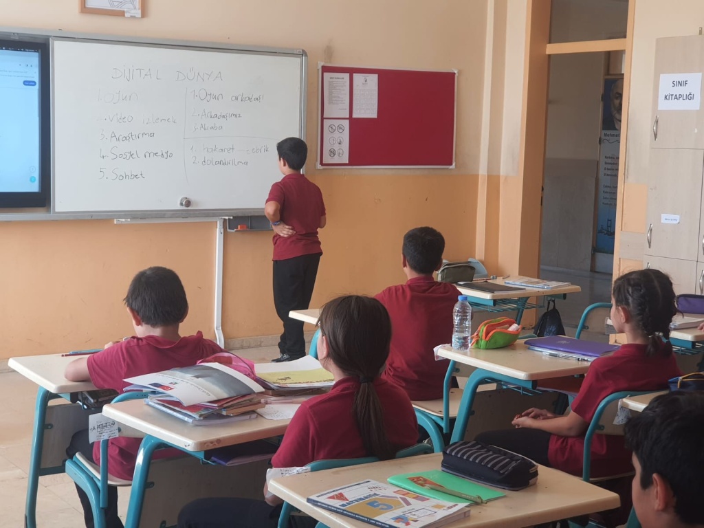 Türkiye yüzyılı maarif modeli "Dijital Okuryazarlık Becerileri"doğrultusunda hazırlanan ders içerikleri dikkate alınarak öğretmenlerimiz tarafından okulumuz öğrencilerine "Dijital Dünyada Çocuk Hakları" konusu işlenmiştir.Öğrencilerimize https://www.unicef.org/turkiye/media/17626/file/Dijital%20Ortamlarda%20%C3%87ocuk%20Haklar%C4%B1%20ile%20%C4%B0lgili%20Genel%20Yorum%20No:%2025.pdf